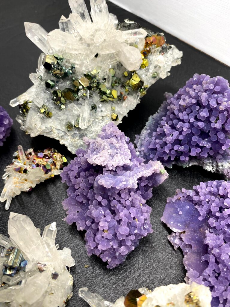 - Grape Agate : A unique crystal shaped like a small round grape, available in purple, green, and blue. Its smooth texture and natural shape make it highly desirable for decoration as well as rare mineral collectibles.